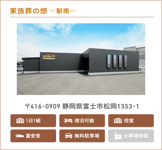 「家族葬の想」では、直葬・火葬式・一日葬・家族葬・一般葬など葬儀の形式に関わらず、