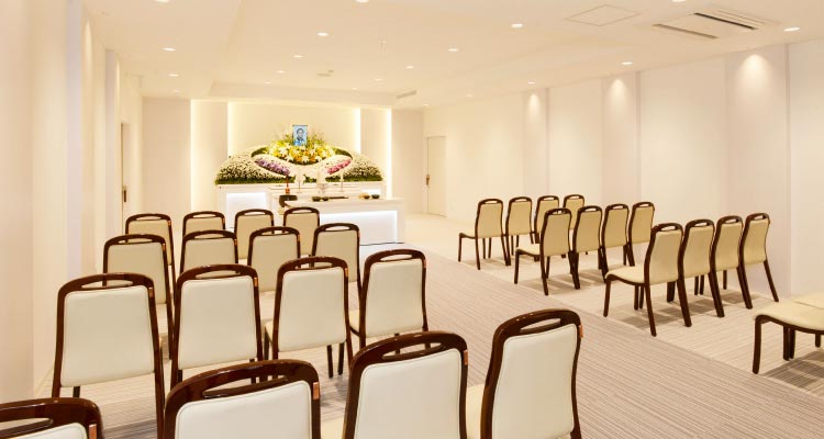 白基調で洗練された内装が特徴的で、1日1組限定利用可能な葬儀会館です。また、宗旨・宗派を問わず、少人数の直葬・火葬式・一日葬・家族葬から一般的な葬儀にも柔軟に対応可能です。